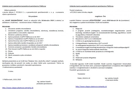 na „VALNÉ ZHROMAŽDENIE“, ktoré sa uskutoční dňa 24.februára 2018 (v sobotu) so začiatkom o 14,00 hod. v kultúrnom dome v Plášťovciach.